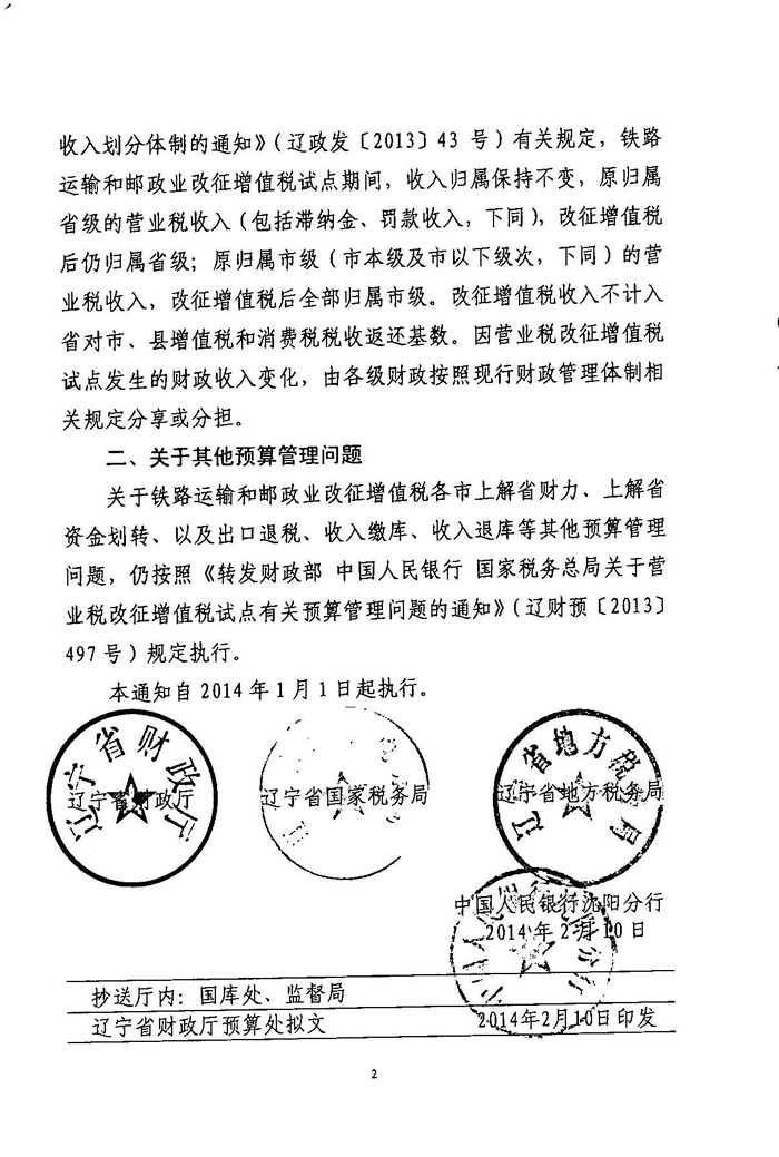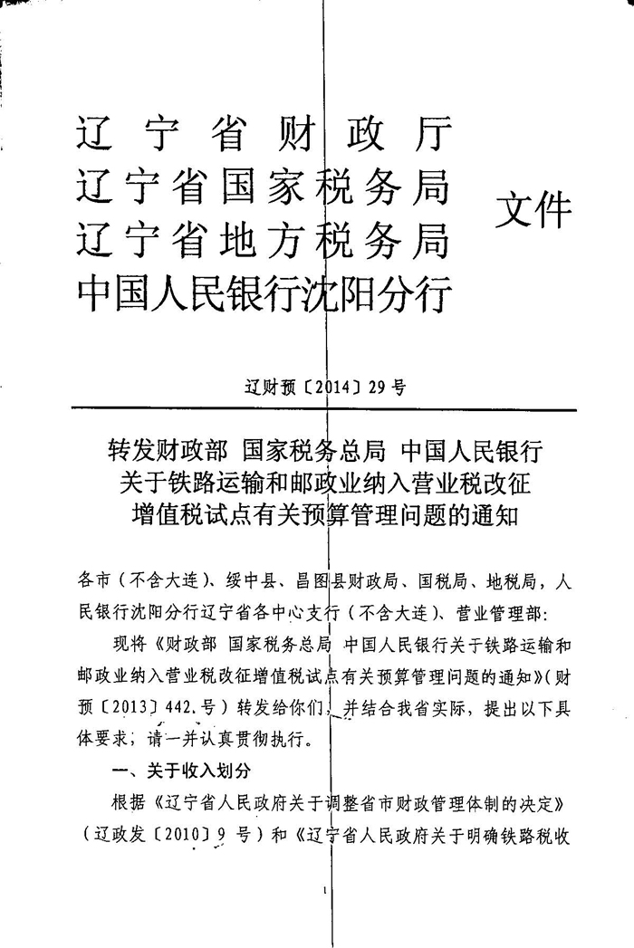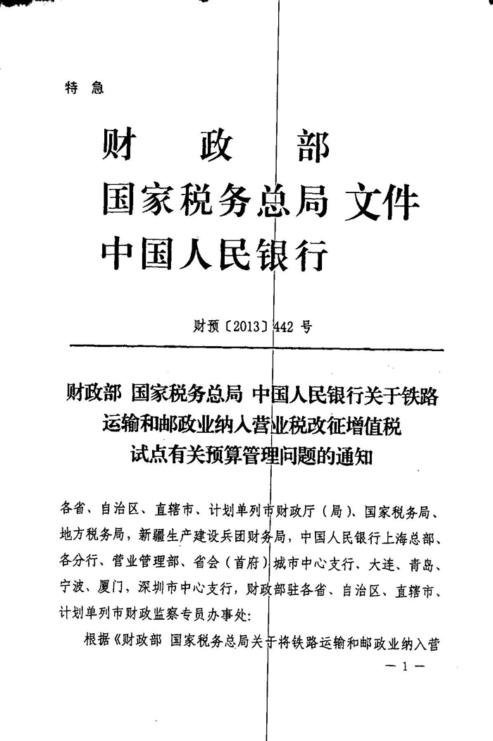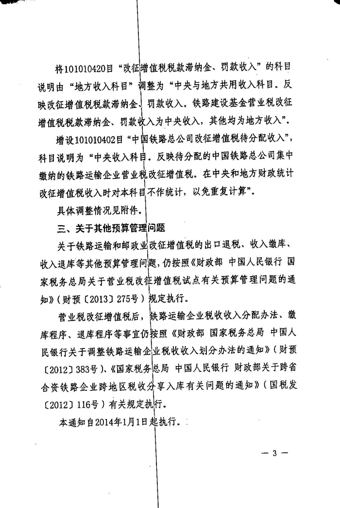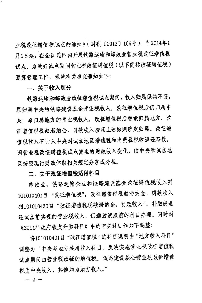 关于将铁路运输和邮政业纳入营业税改征增值税试点有关预算管理问题的通知