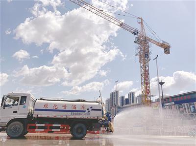水车正在进行喷淋。 李浩摄